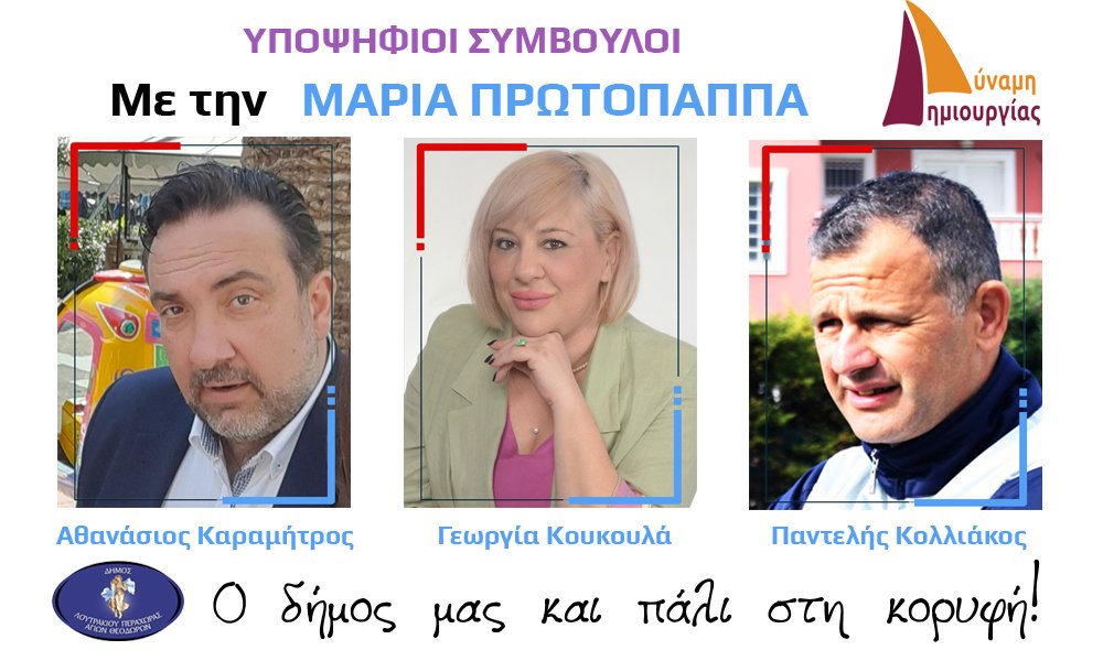 Με τιμή ανακοινώνουμε σήμερα, τρείς πολύ σπουδαίους και σημαντικούς συνεργάτες της «𝜟ύ𝝂𝜶𝝁𝜼ς 𝜟𝜼𝝁𝜾𝝄𝝊𝝆𝜸ί𝜶ς», ως υποψήφιους δημοτικούς συμβούλους στις εκλογές του Οκτωβρίου.