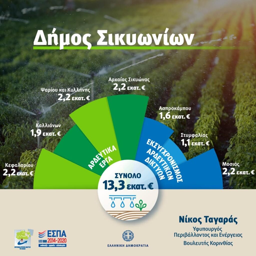 13,3 εκατ. € για 7 μεγάλα Αρδευτικά Έργα του Δήμου Σικυωνίων μέσω της ένταξης στο Πρόγραμμα Αγροτικής Ανάπτυξης με χρηματοδότηση από το ΕΣΠΑ 2014-2020