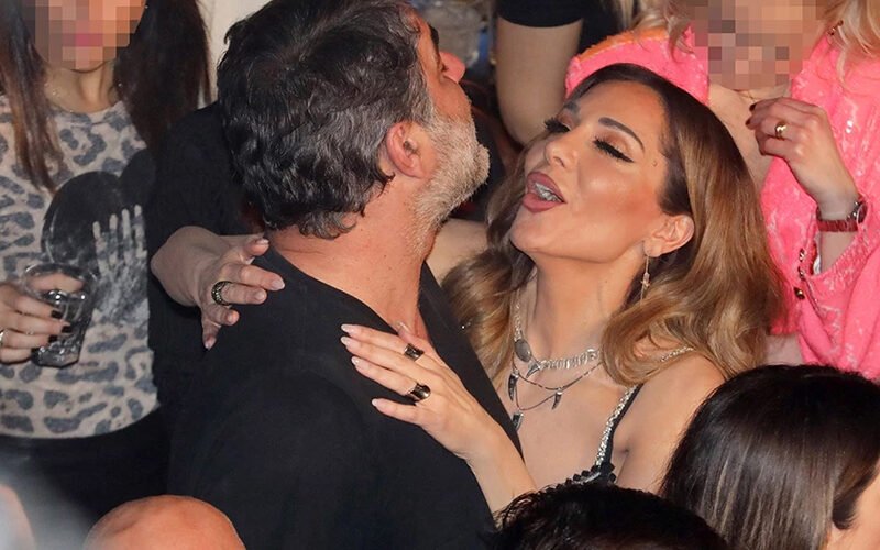 Ο φωτογραφικός φακός απαθανάτισε τόσο την Δέσποινα Βανδή η οποία πείραζε την παρέα της όσο και τον Βασίλη Μπισμπίκη ο οποίος δεν άφηνε από τα μάτια του και την αγκαλιά του την αγαπημένη του αδιαφορώντας για τα αδιάκριτα βλέμματα που τους κοιτούσαν.