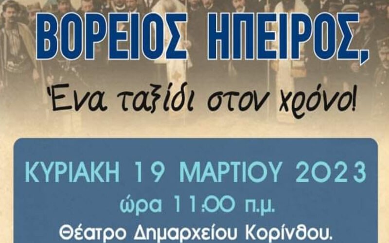 Ο Σύλλογος Βορειοηπειρωτών Κορινθίας “Ο Άγιος Δονάτος” σας προσκαλεί στην εκδήλωση που θα πραγματοποιηθεί την Κυριακή 19 Μαρτίου 2023 και ώρα 11:00 π.μ. στο θέατρο του Δημαρχείου Κορίνθου με τίτλο,