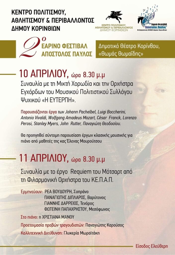 Σήμερα Μεγάλη Δευτέρα και ώρα 20.30 στο Δημοτικό Θέατρο Κορίνθου “Θωμάς Θωμαϊδης” ξεκινά 2ο Εαρινό Φεστιβάλ “Απόστολος Παύλος.