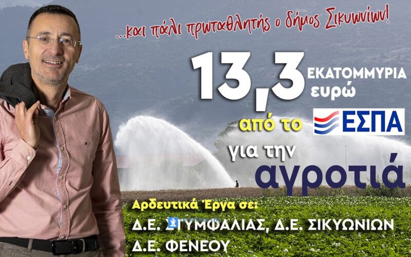 Δήμος Σικυωνίων: Ακόμα 13 εκατ. ευρώ για αρδευτικά έργα!